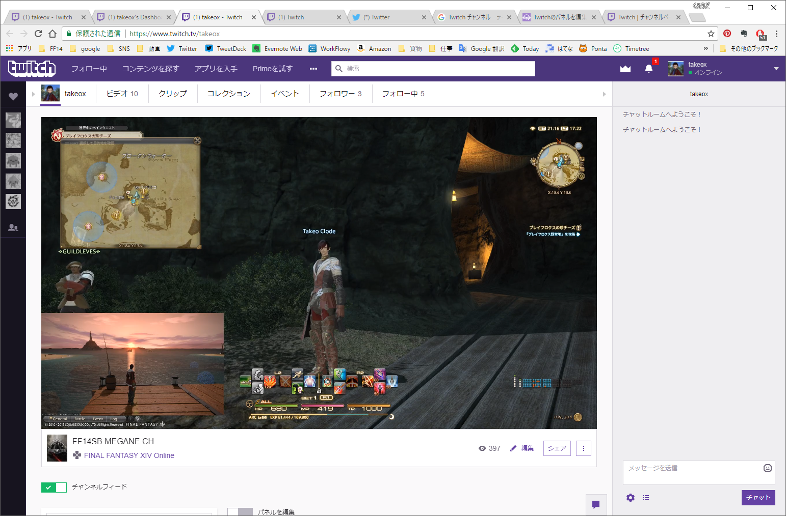 takeoxのOBS→Twitch配信テストをwww.twitch.tvから視聴する